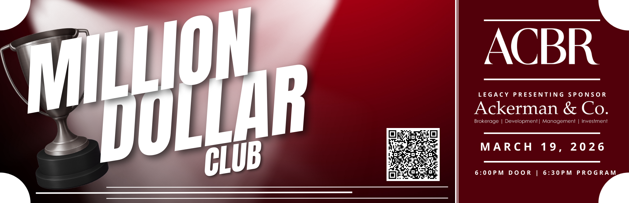 19 Mar ACBR | Million Dollar Club Celebration ACBR | Million Dollar Club Celebration Thursday, March 19, 2026 (6:00 PM to 9:00 PM) Coca-Cola Roxy ACBR Details You're Registered! DescriptionLocation Thursday, March 19th The Coca-Cola Roxy 800 Battery Ave SE #500, Atlanta, GA 30339 6:00 pm: Doors Open 6:15 pm: Dinner & Awards Begin Attire: Black Tie Optional 2026 MDC Members: No Charge but Registration Required Non-MDC Members and Guests: $250 per person Legacy Presenting Sponsor: Questions? Please email us at mdc@atlcbr.com Coca-Cola Roxy 800 Battery Ave., SEAtlanta, GA 30339 Map & Directions